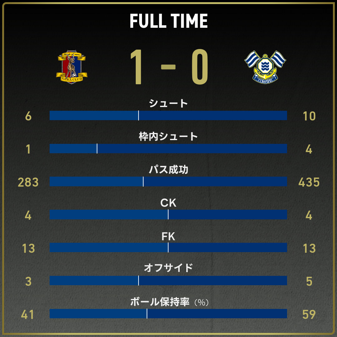 前節(愛媛戦)を分析し、真面目に対策されました。選手のレベルは奈良のほうがだいぶ上です。